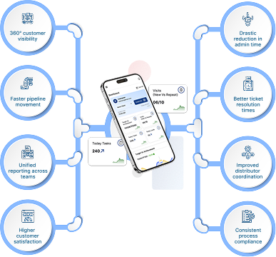CRM 4.0 seamlessly connects with the entire EAZY ecosystem, including EAZY ERP for real-time stock, billing, accounts & item masters; EAZY DMS for distributor orders, claims and inventory; & Recibo (SFA) for on-field execution, beat plans & order capture. So that your business gains: